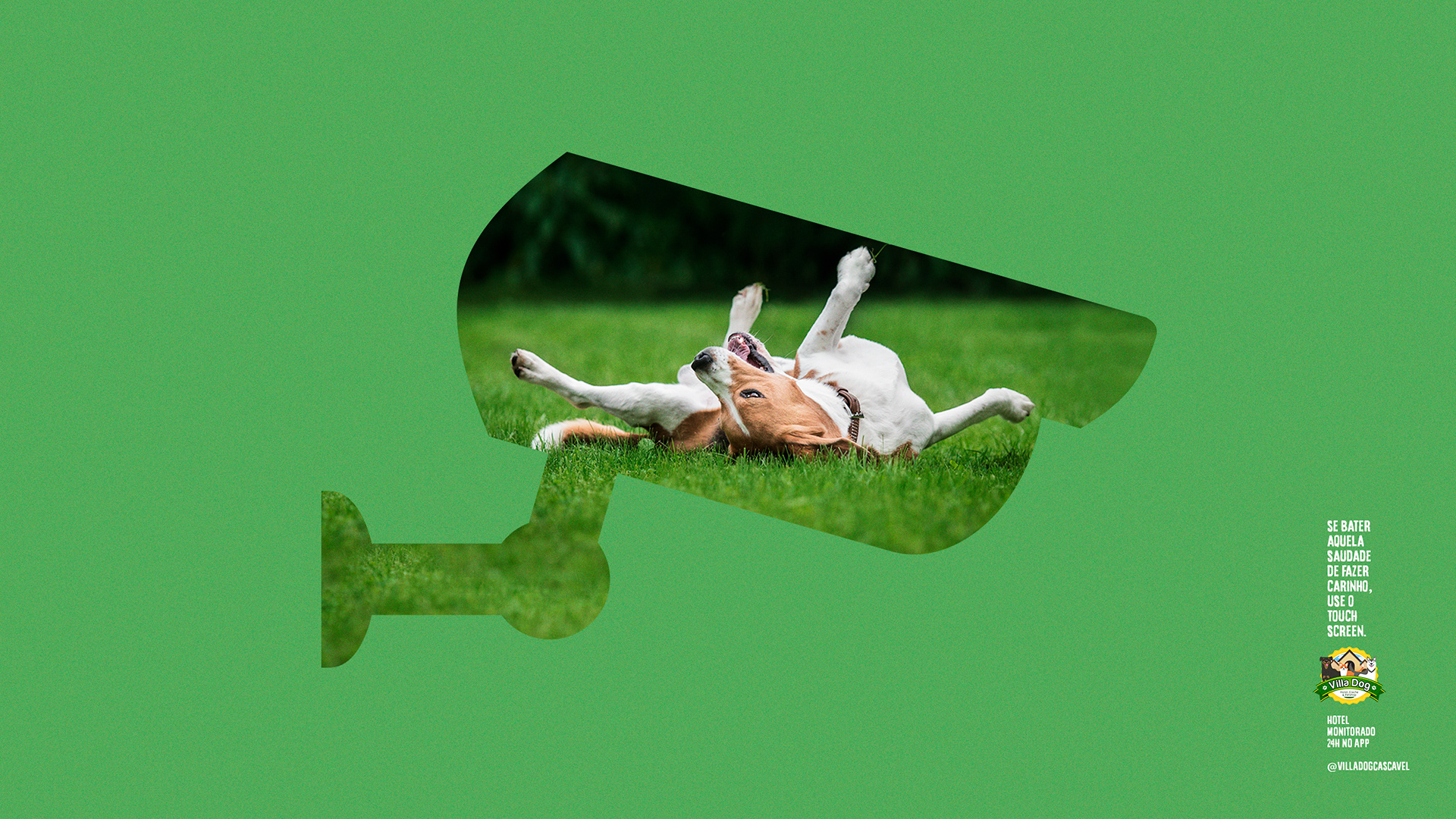 Campanha para mostrar a novidade da Villa Dog. Um sistema de câmera 24h, onde através de um aplicativo, você consegue acompanhar o dia a dia do seu cãozinho.